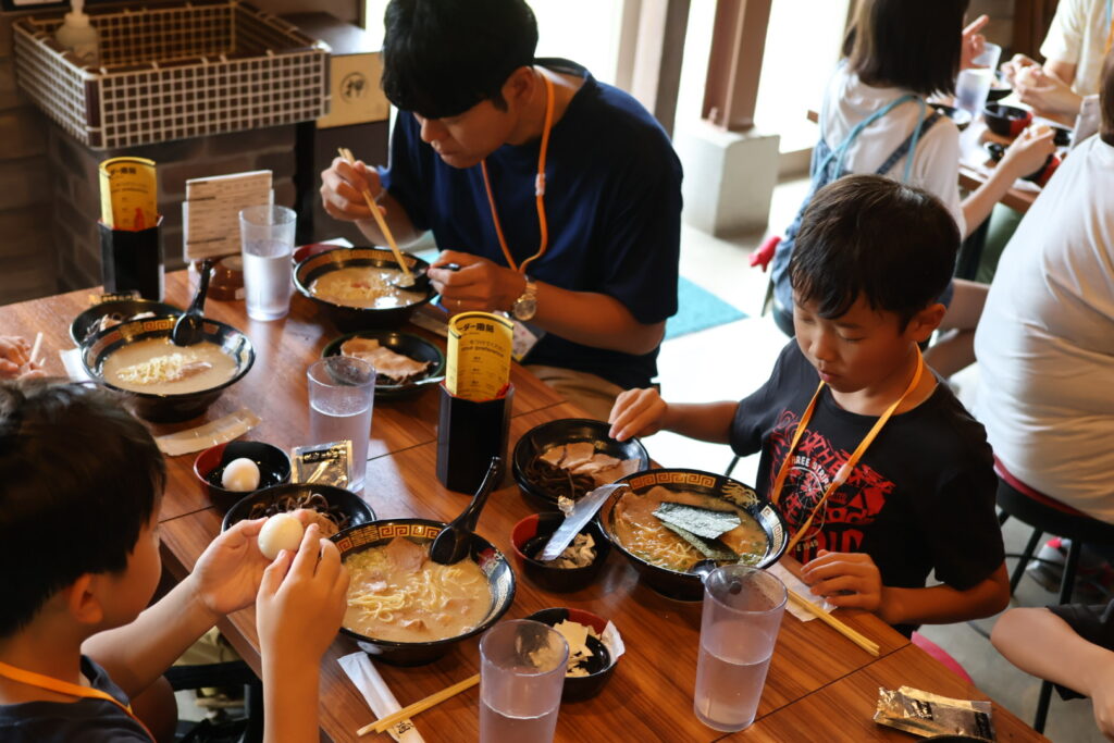 見学後は本場のとんこつラーメンを味わい、