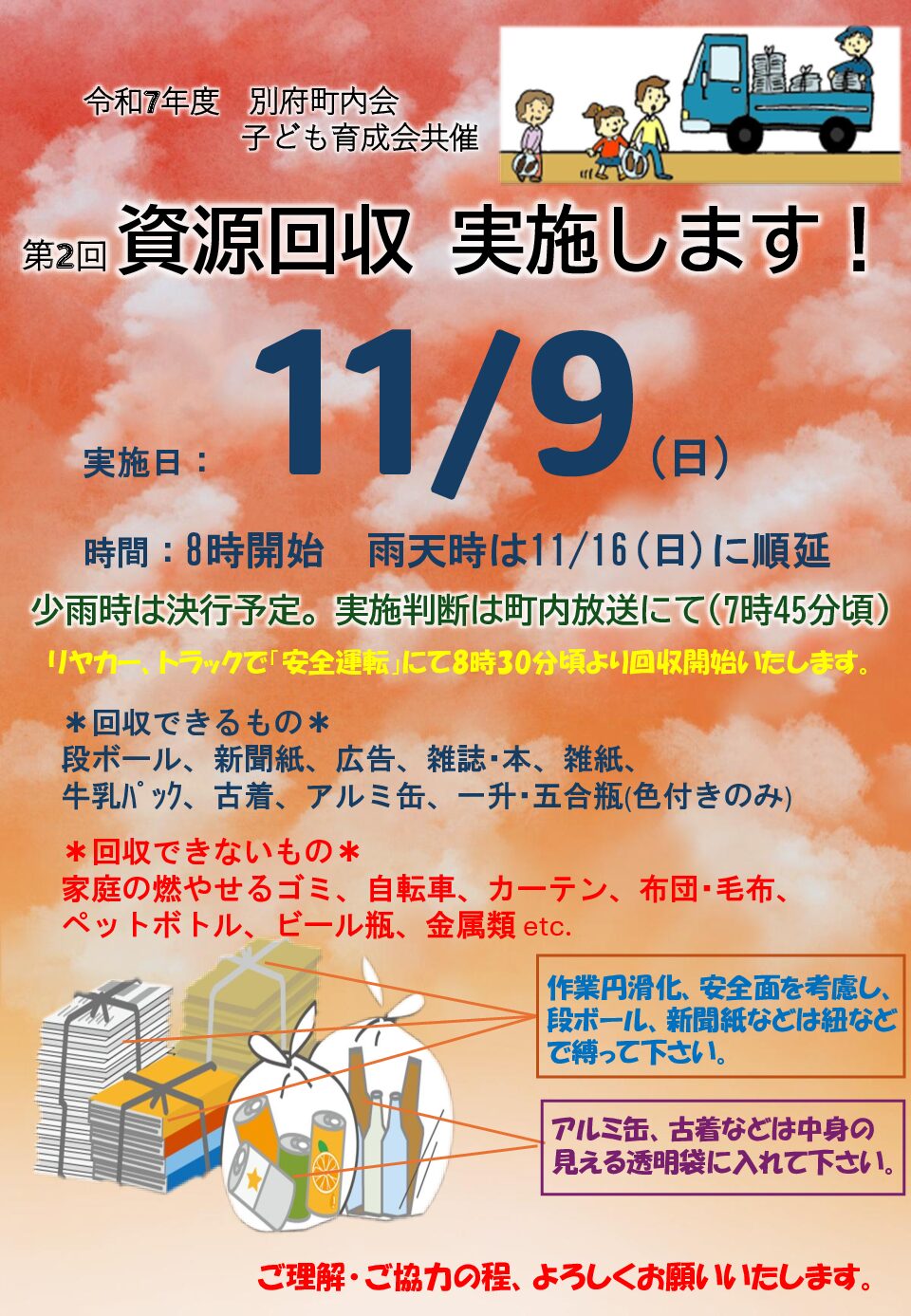 **「第2回 資源回収」**を下記の日程で実施いたします。