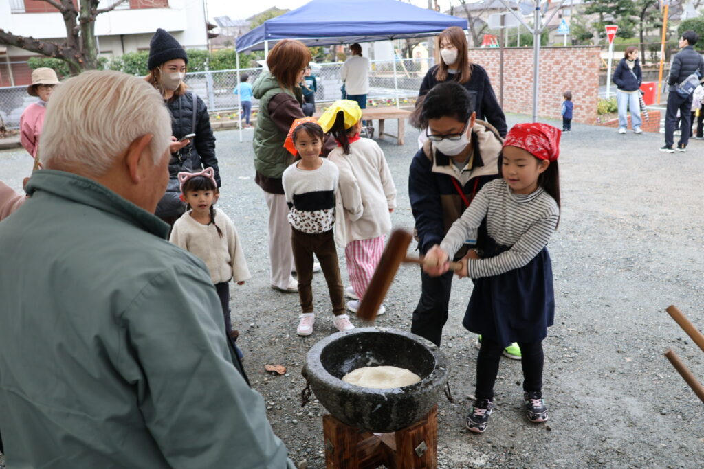 日本の伝統文化である餅つきを通して、世代を超えた交流の場となりました。